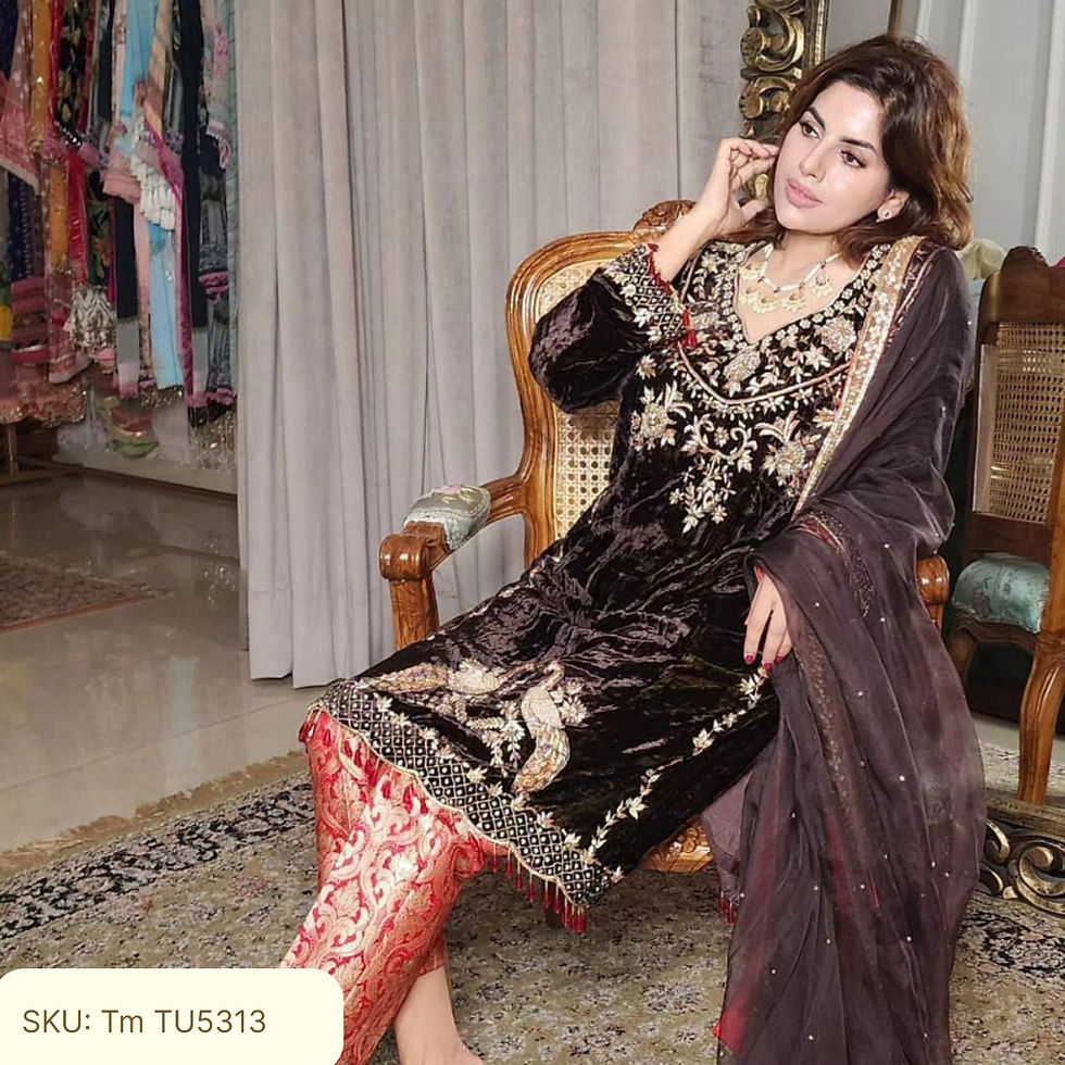Stylish Velvet Kurta Plazzo Set for Modern Women