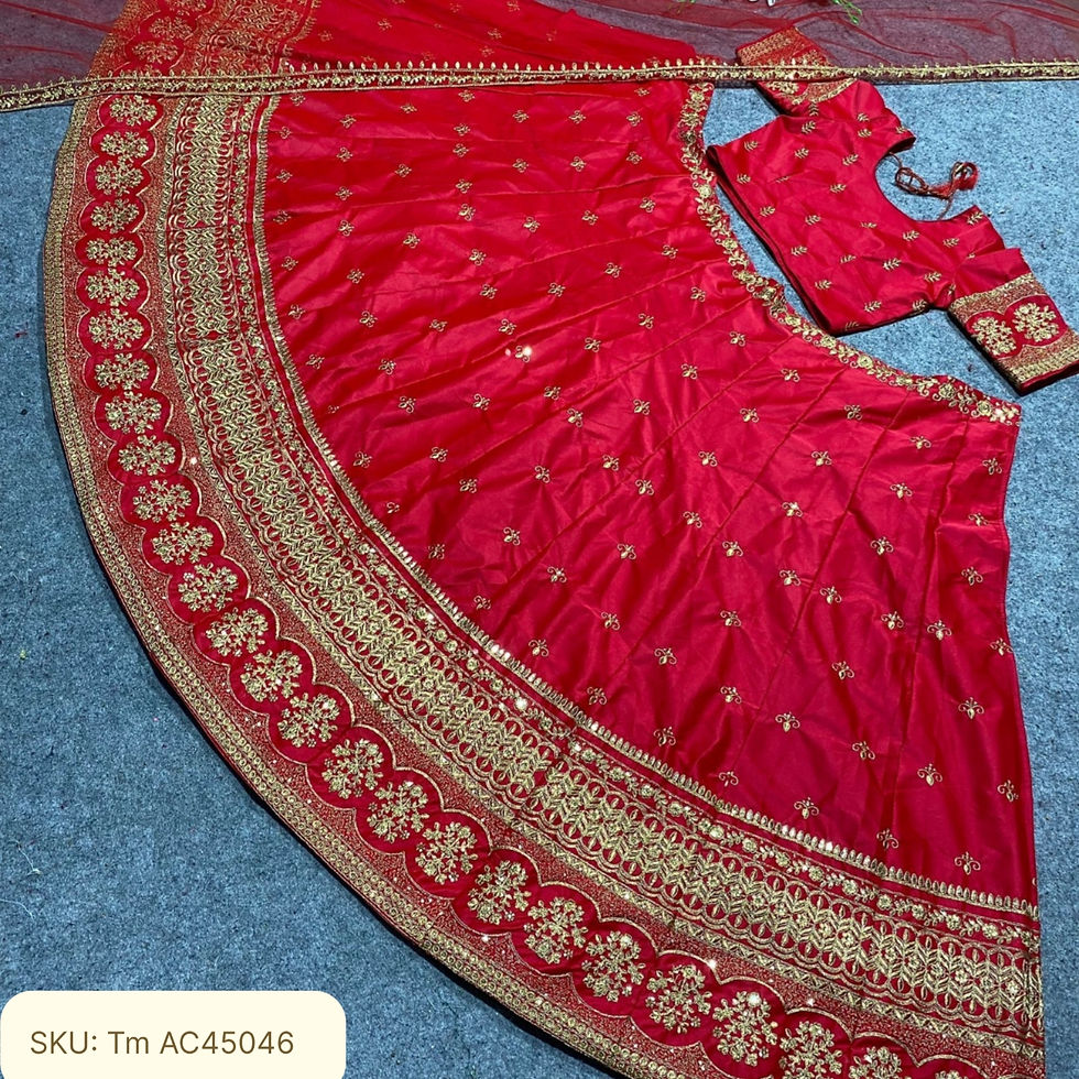 Red Colour Embroidered Attractive Party Wear Silk Lehenga Choli Dupatta